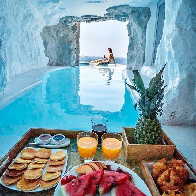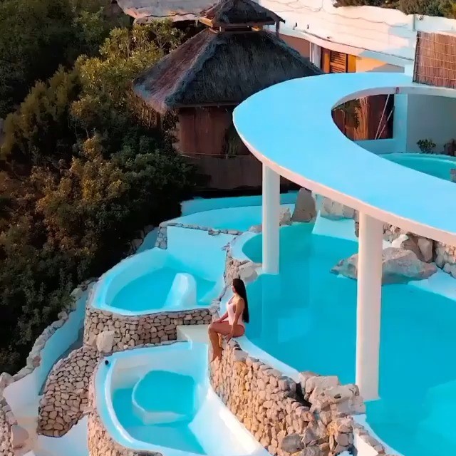Beautiful hotels on the rocky shores of Greece.